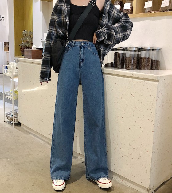 2022年秋季高腰牛仔裤女式大码宽松阔腿长裤,适合丰满女孩,修身垂坠拖把直筒裤