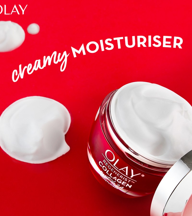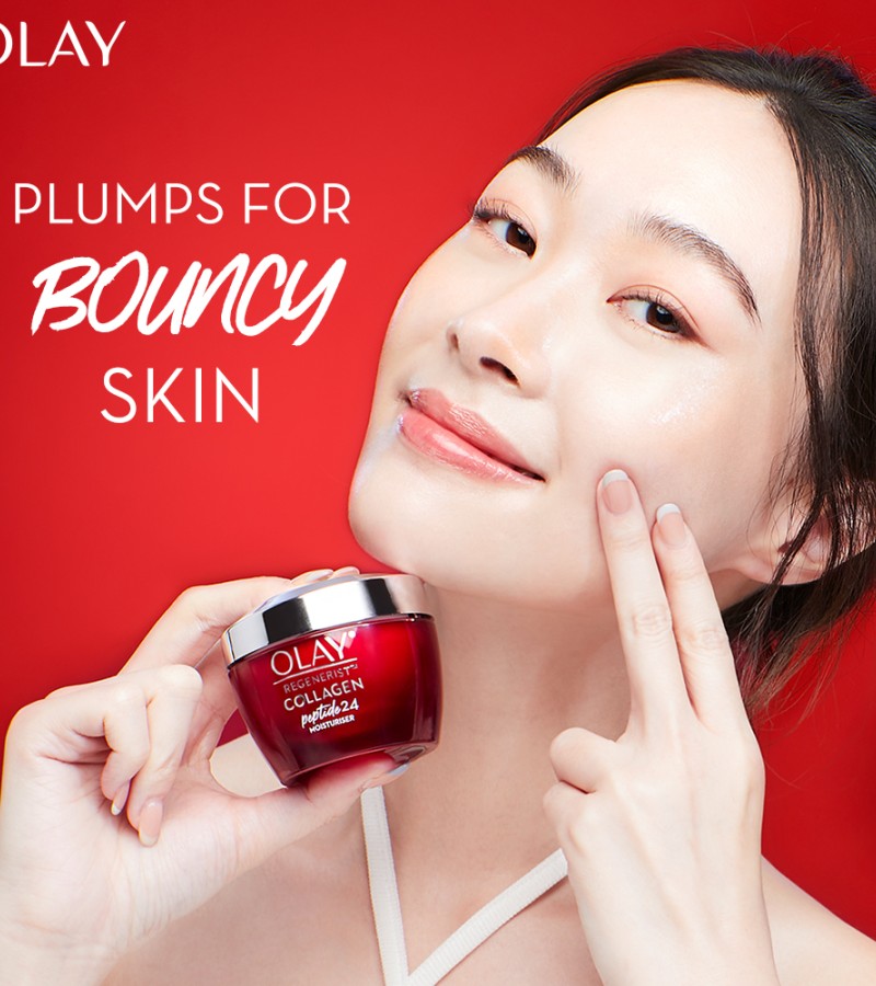 Plump & Bouncy Skin all day long. Olay’s Unique technology Collagen Peptide 24 penetrates^ better into the skin. Regular collagen have larger molecules that couldn’t penetrate into the skin. Olay’s Collagen Peptide is a smaller molecule, hence it penetrates^ better into the skin.