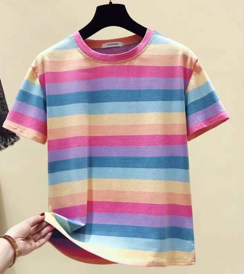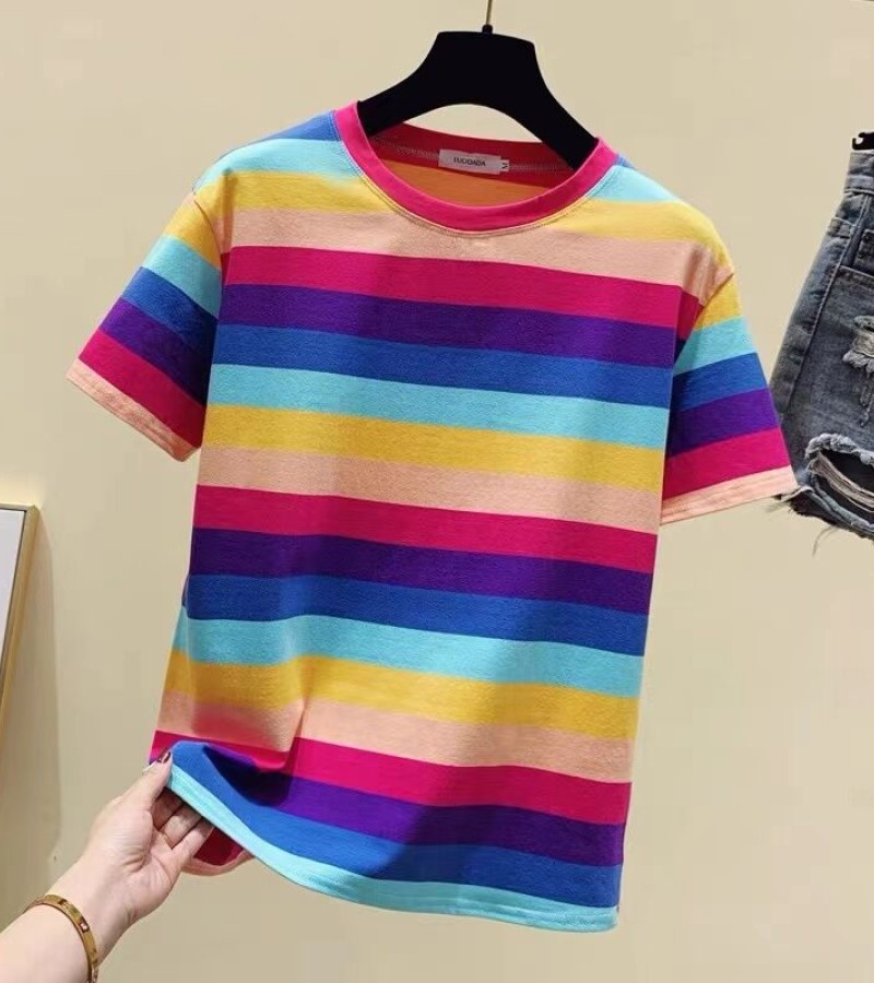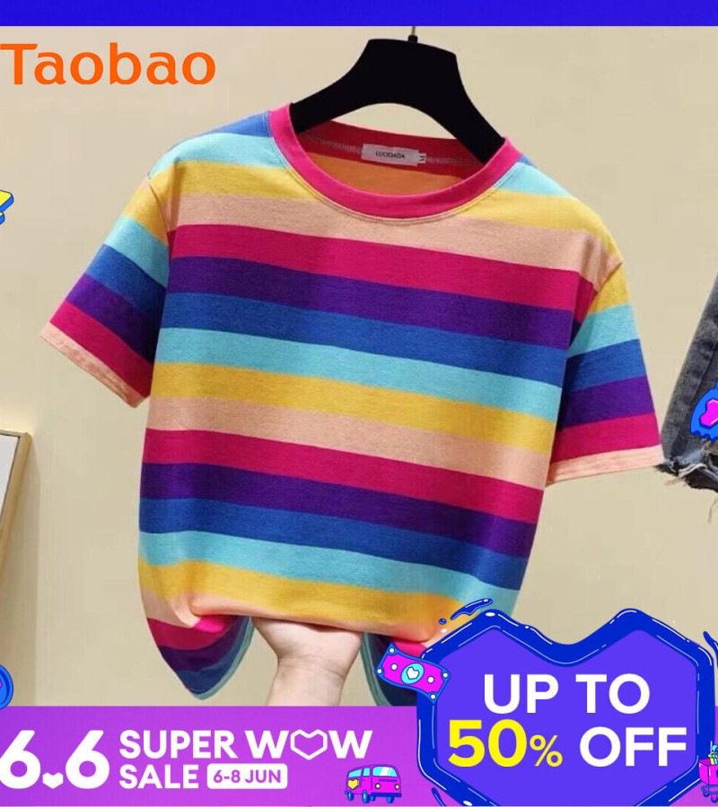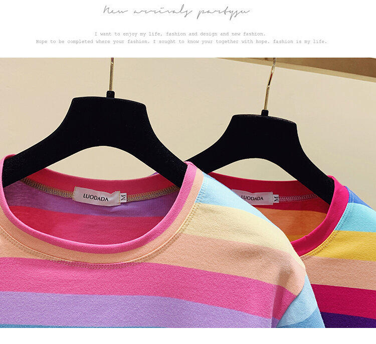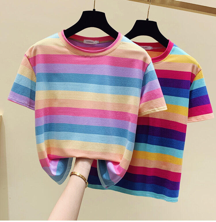 超受欢迎的条纹韩式宽松圆领短袖T恤