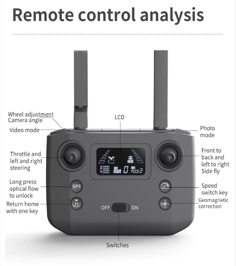 1 x RC Drone 1 x Remote Controller 1 x USB Charging Cable 4 x Spare Propellers 1 x Gimbal Cover 1 x User Manual 8 x Screws 1 x Screwdriver